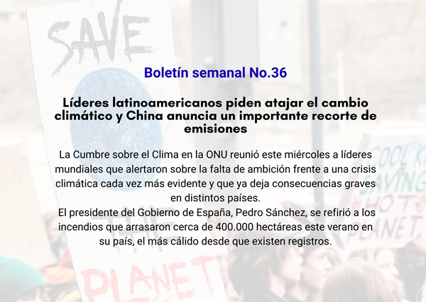 Boletín semanal No. 36: Líderes latinoamericanos piden atajar el cambio climático y China anuncia un importante recorte de emisiones.